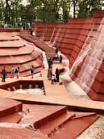 Войдя в новую зону Гранд-Каньон, мы словно перенеслись в другой мир. Перед нами предстал искусственно созданный каньон с высокими, величественными стенами насыщенного красного цвета. Они напоминают скалы знаменитого Гранд-Каньона в Америке и являются фоном для завораживающего зрелища – каскадов водопадов, стекающих вниз, к небольшому водоему в центре. Также побывали в таких локациях как Кроличья нора, парк облаков.
