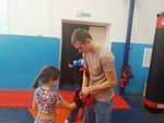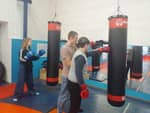 Затем стали участниками экскурсионного практикума в казачьем спортивном центре единоборств «Пластуны». Кандидат в мастера спорта Климочкин Данил познакомил ребят с назначением защитной спортивной амуниции и показал основные приемы, используемые в кикбоксинге. Каждый желающий смог примерить защитный шлем и перчатки, а также попробовать свои силы на разных спортивных снарядах.
