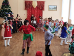 Затем состоялась развлекательная программа «Новый год в кругу друзей». Дети отгадывали зимние загадки, участвовали в музыкальном, поэтическом, танцевальном конкурсах, раскрашивали новогодние сувениры. Так как наступающий 2026 год по Восточному календарю – Год огненной лошади, то и ребят ожидало много разнообразных конкурсов и викторин, связанных с этим видом домашних животных.Мероприятие завершилось дружным хороводом и улыбками на счастливых лицах.
