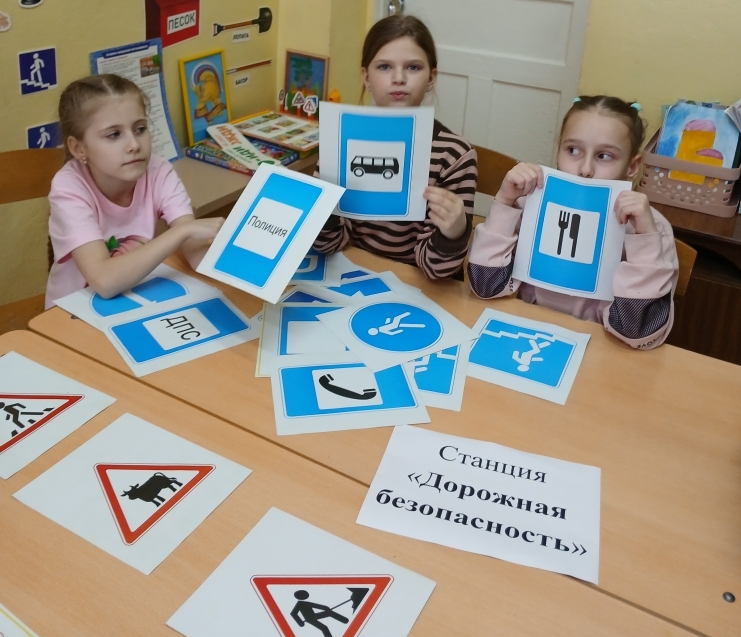 Цель мероприятия заключалась в формировании представлений детей о личной безопасности и понимании ценности собственного здоровья, расширении знаний о правилах поведения в опасных ситуациях. Ребята совершили увлекательное и познавательное путешествие по «Станциям безопасности». В ходе мероприятия соединяли части пословиц, отвечали на вопросы викторин «С огнём шутки плохи», «Дорожная азбука», «Безопасность дома», разгадывали загадки, собирали «Дорожные пазлы», закрепили назначение разрешающих и запрещающих дорожных знаков. На станции «Правильное питание» сыграли в игру «Полезные и вредные продукты».