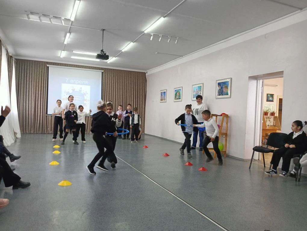 Для создания позитивной атмосферы и приобщения детей к здоровому образу жизни, в дни школьных каникул 3 апреля 2026 года для учащихся объединений «Калинка» и «В гармонии с природой» Центра творчества «Радуга» организована спортивная программа «Веселые старты» под девизом: «Сильные. Смелые. Ловкие».