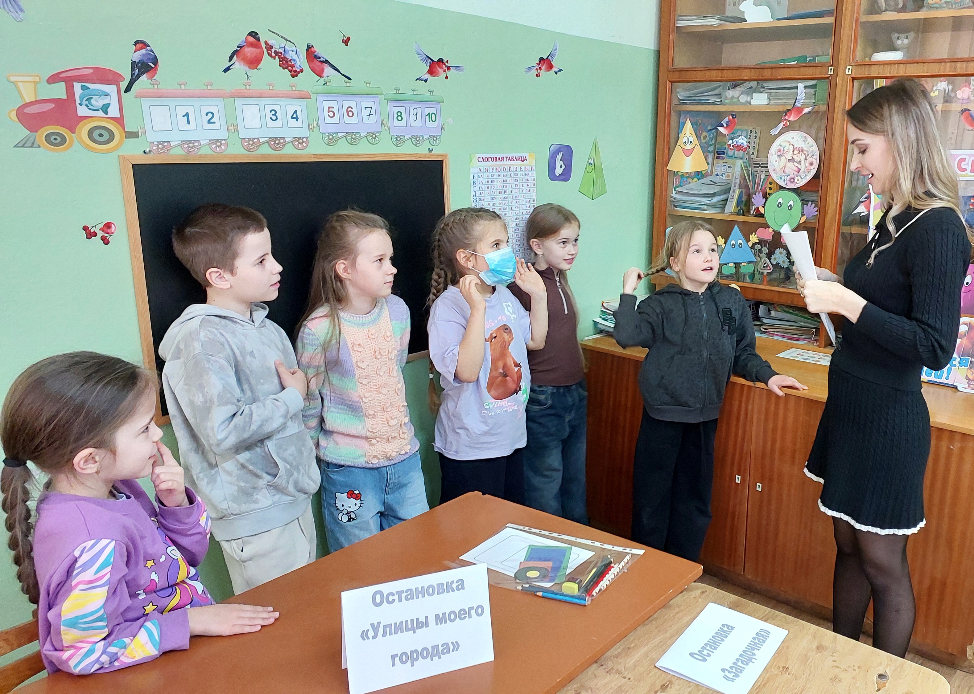 Вторая остановка была посвящена правилам дорожного движения. Юные путешественники повторили значения дорожных знаков и сигналов светофора; вспомнили, как правильно переходить дорогу и вести себя в общественном транспорте; разобрали опасные ситуации, которые могут возникнуть на улице.