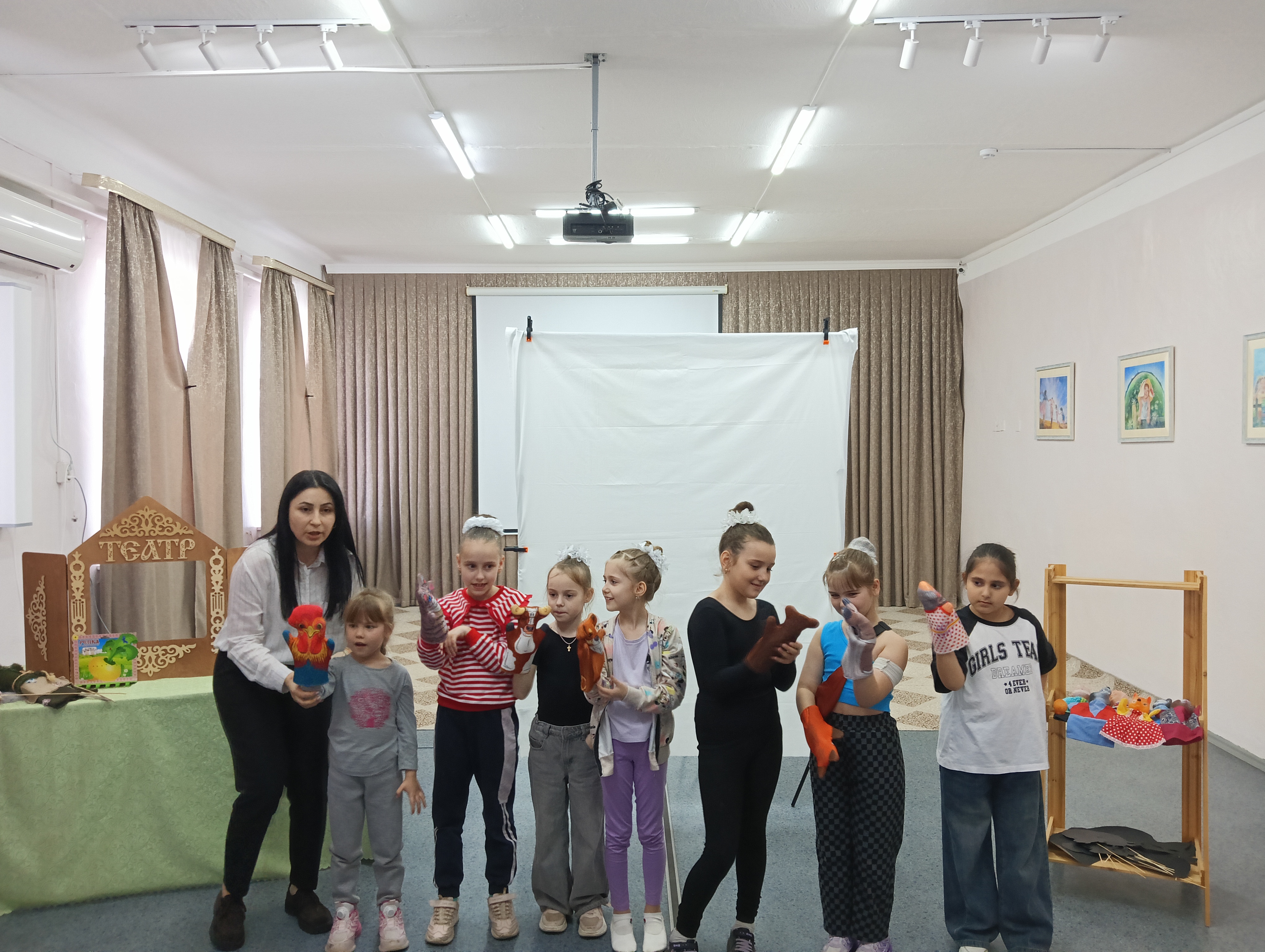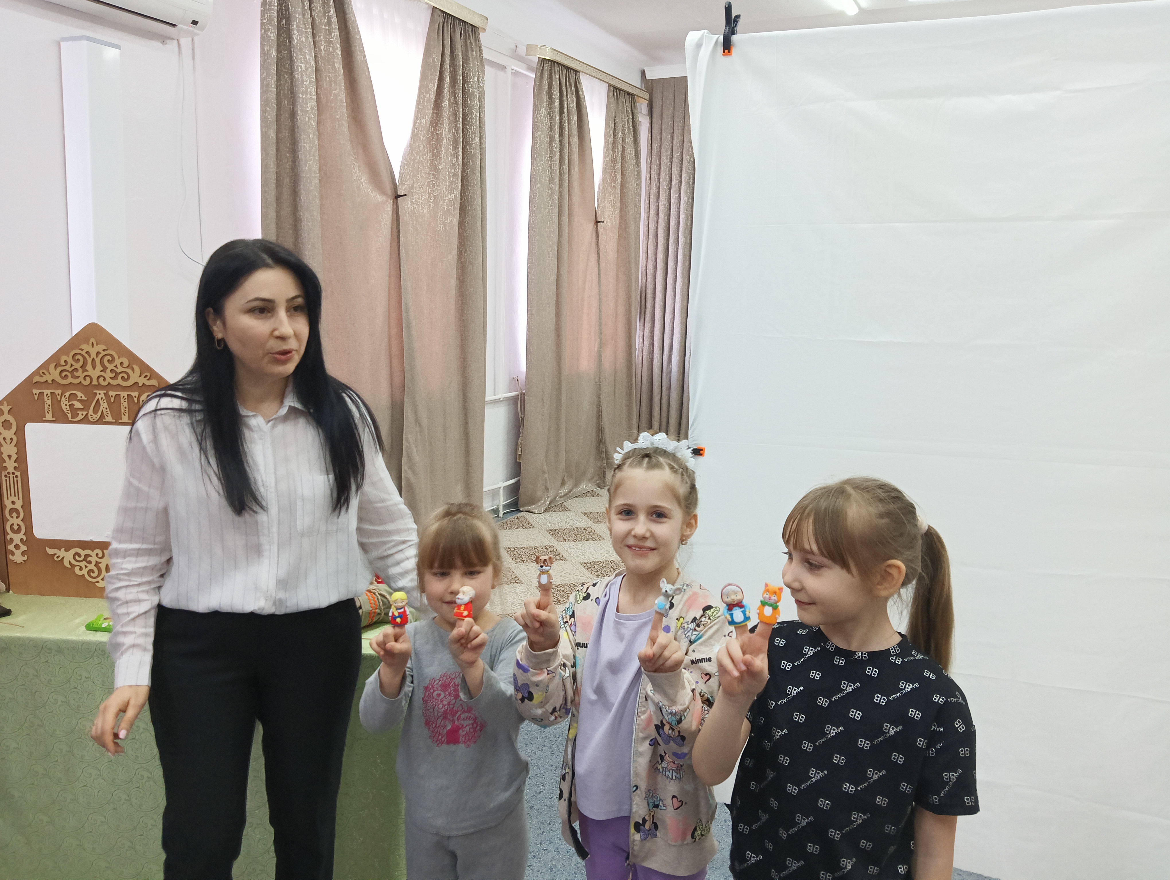 2 апреля 2026 года для ребят Центра творчества «Радуга» прошла познавательная программа «Волшебный мир театра». Дети с большим интересом слушали про историю и направления в театре, рассматривали кукольных персонажей, пробовали себя в роли кукловодов с тростевыми, перчаточными и пальчиковыми куклами. В завершение мероприятия показали сказку-миниатюру с куклами теневого театра.